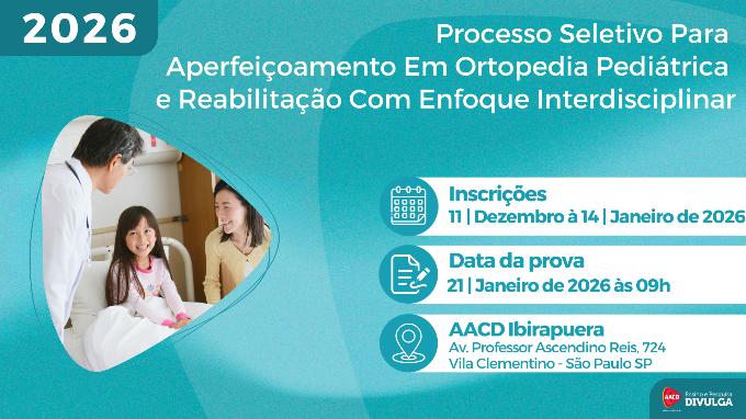 A Associação de Assistência à Criança Deficiente (AACD) declara aberto o processo seletivo para o Aperfeiçoamento em Ortopedia Pediátrica.