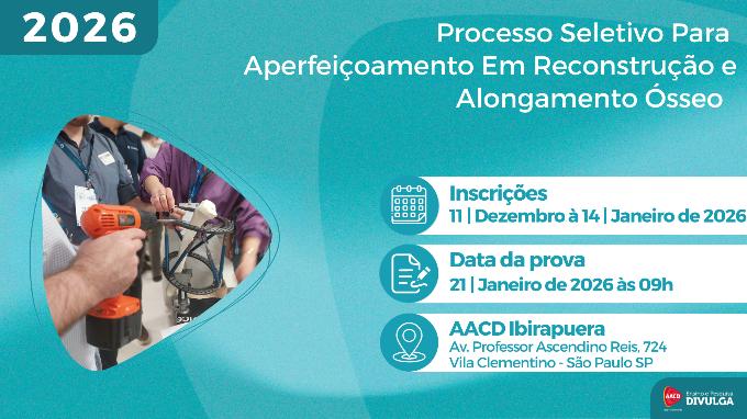 A Associação de Assistência à Criança Deficiente (AACD) declara aberto o processo seletivo para o Aperfeiçoamento em Reconstrução e Alongamento Ósseo