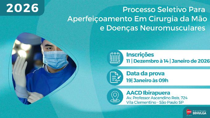 A Associação de Assistência à Criança Deficiente (AACD) declara aberto o processo seletivo para o Aperfeiçoamento em Cirurgia da Mão Pediátrica e Doenças Neuromusculares