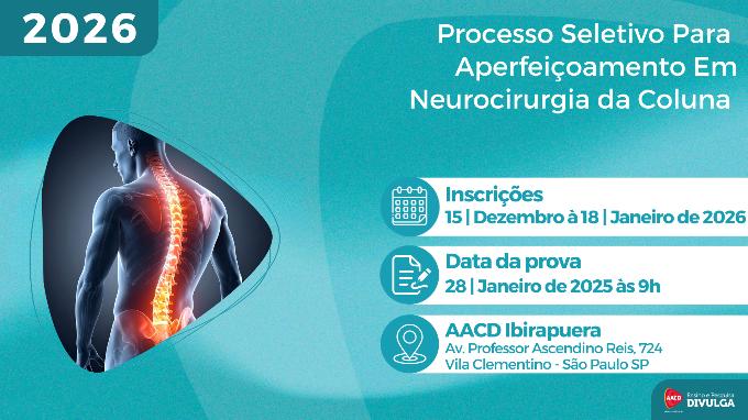 A Associação de Assistência à Criança Deficiente (AACD) declara aberto o processo seletivo para o Aperfeiçoamento em Neurocirurgia da coluna